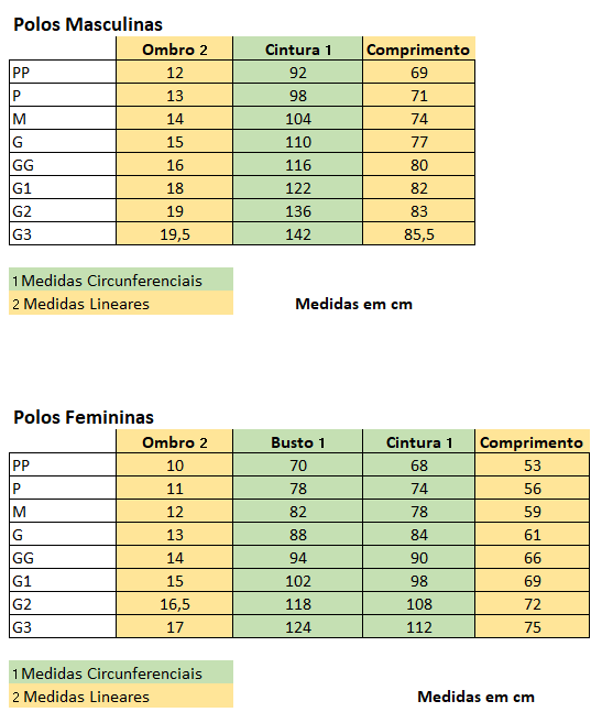 O valor das polos masculinas ou femininas é R$ 90,00 + mais valor de personalização com bordado